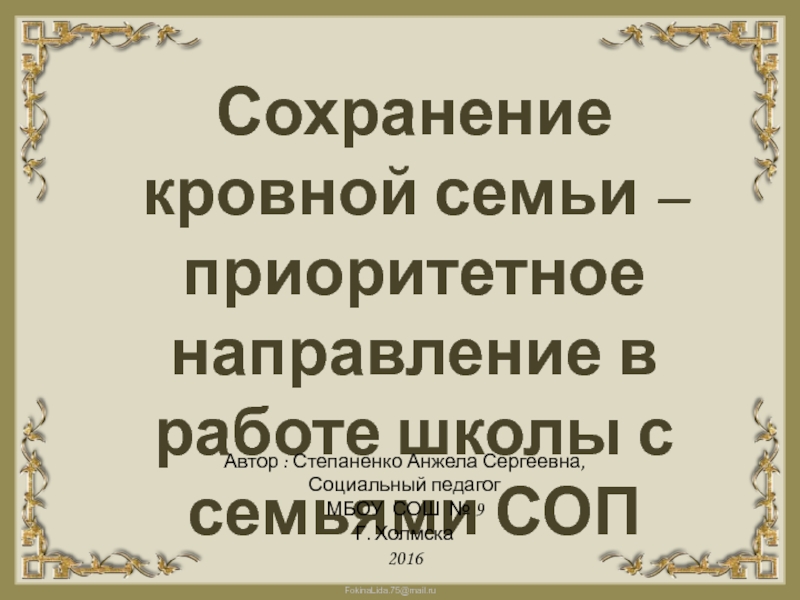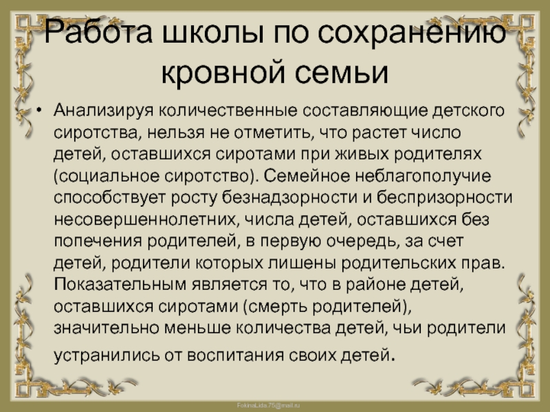 Слайд 1Сохранение кровной семьи – приоритетное направление в работе школы с семьями