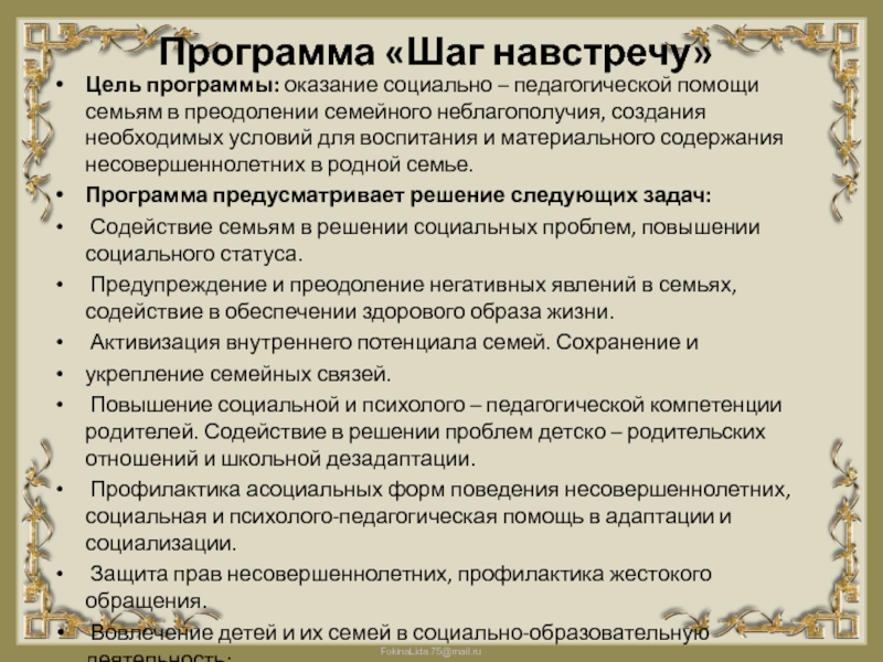 преодолении семейного неблагополучия, создания необходимых условий для воспитания и материального содержания несовершеннолетних в родной семье.