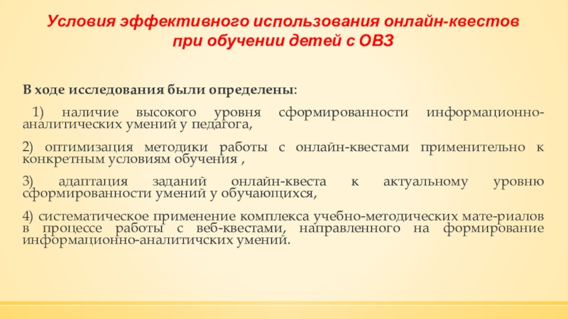 Условия эффективного использования онлайн-квестов при обучении детей с ОВЗ