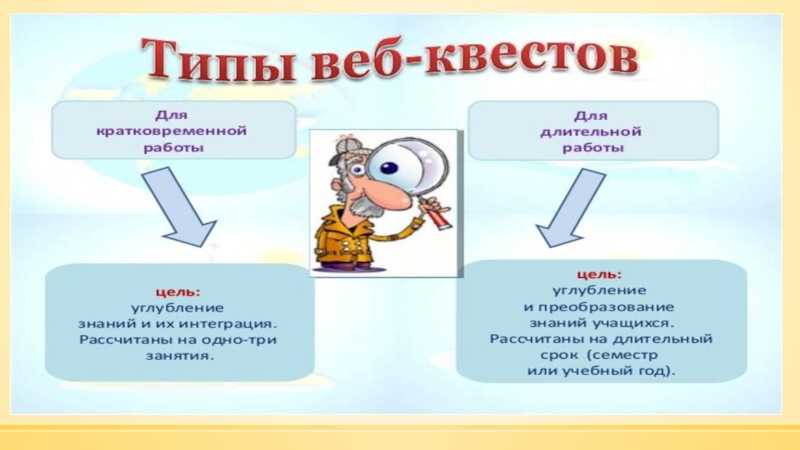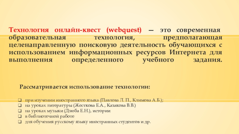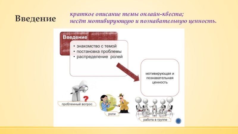Онлайн-квест (webquest) в педагогике - проблемное задание, проект с использованием интернет-ресурсов. Онлайн-квест – сценарий организации проектной деятельности учащихся по любой теме.(Бимкина Н.В.)