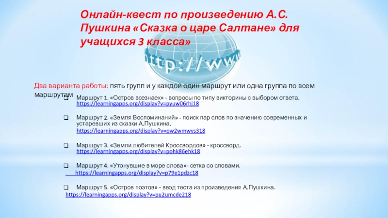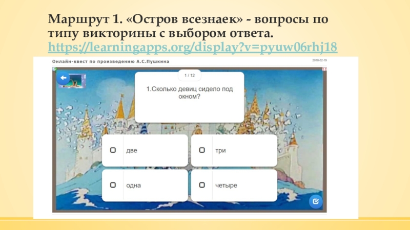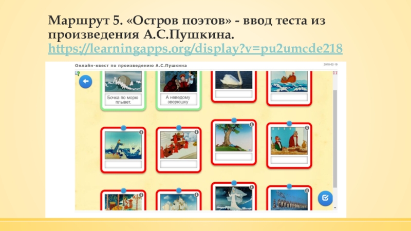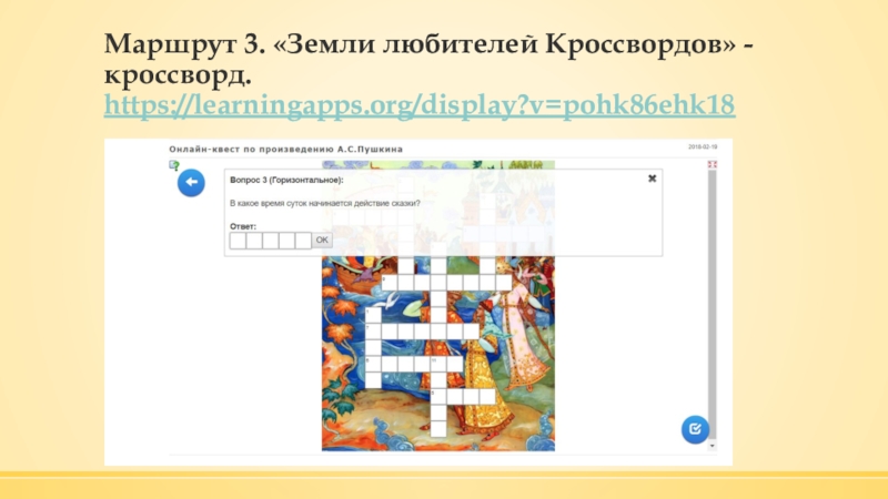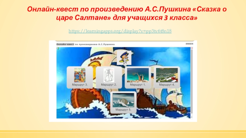 Онлайн-квест по произведению А.С.Пушкина «Сказка о царе Салтане» для учащихся 3 класса»