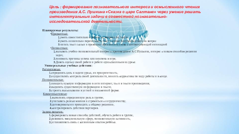 вызывать учебно-познавательный интерес к произведению А.С.Пушкина, интерес к новым способам решения задач;