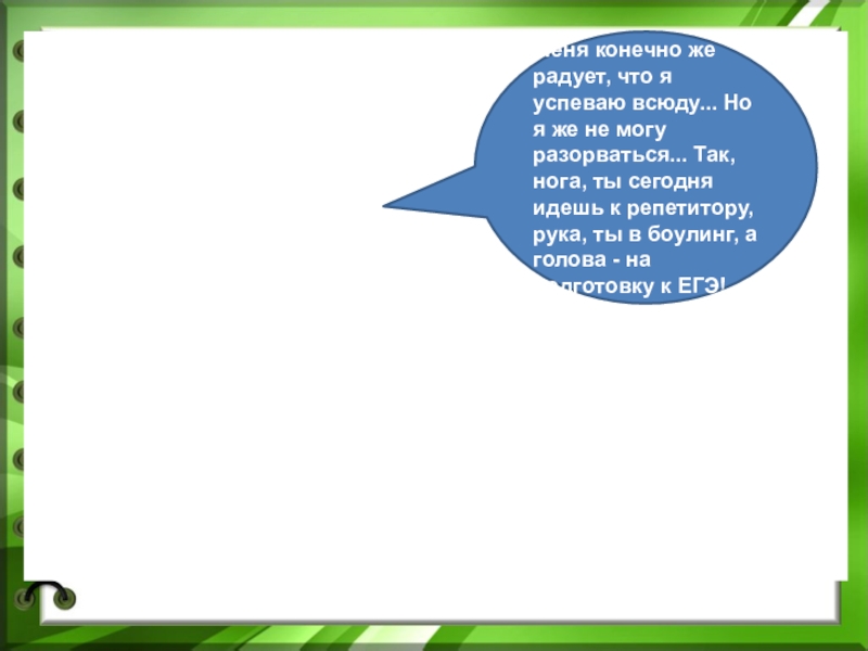 Слайд 7Меня конечно же радует, что я успеваю всюду... Но я же