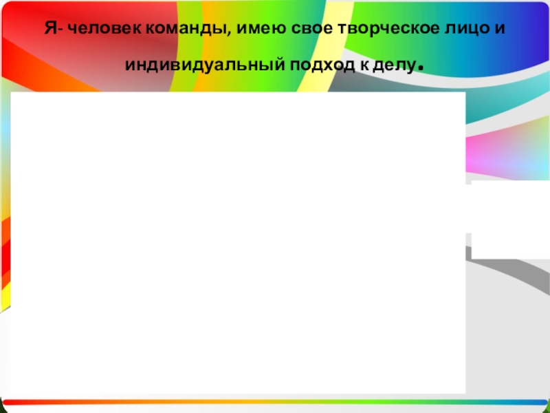 Слайд 9Я- человек команды, имею свое творческое лицо и индивидуальный подход к