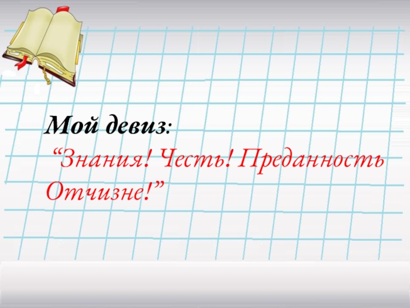 Слайд 5Мой девиз: “Знания! Честь! Преданность Отчизне!”