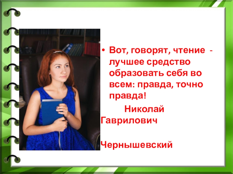Слайд 6Вот, говорят, чтение - лучшее средство образовать себя во всем: правда,