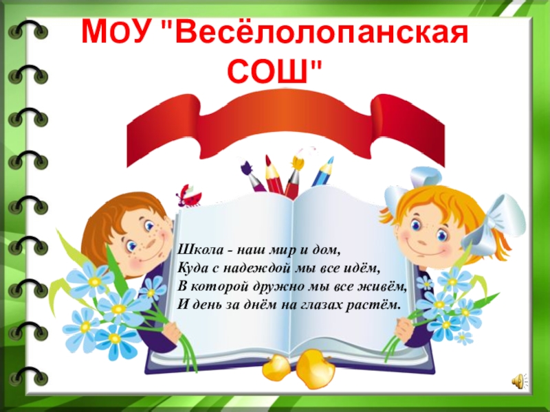 МOУ "Весёлолопанская СОШ"Школа - наш мир и дом, Куда с надеждой мы все идём, В которой дружно мы все живём, И день за днём на глазах растём.