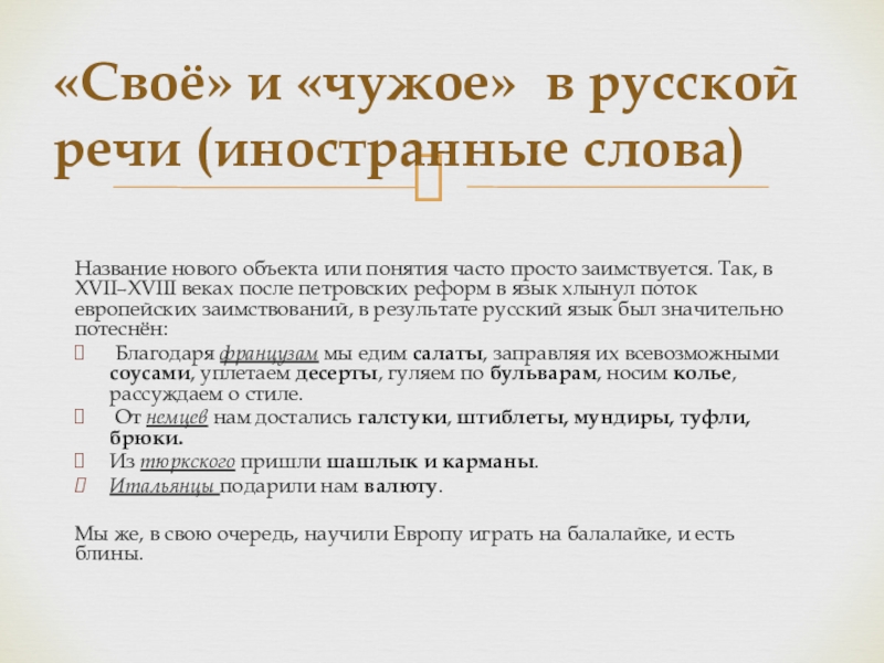«Своё» и «чужое» в русской речи (иностранные слова)