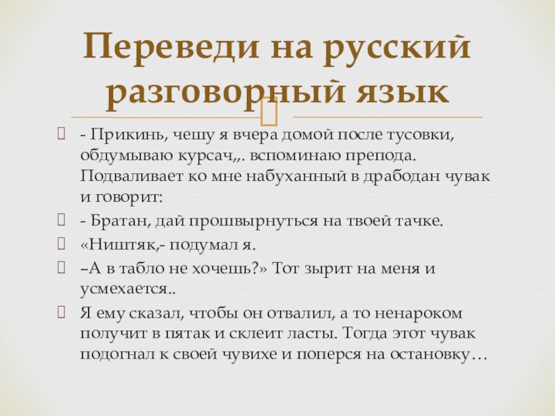 Переведи на русский разговорный язык