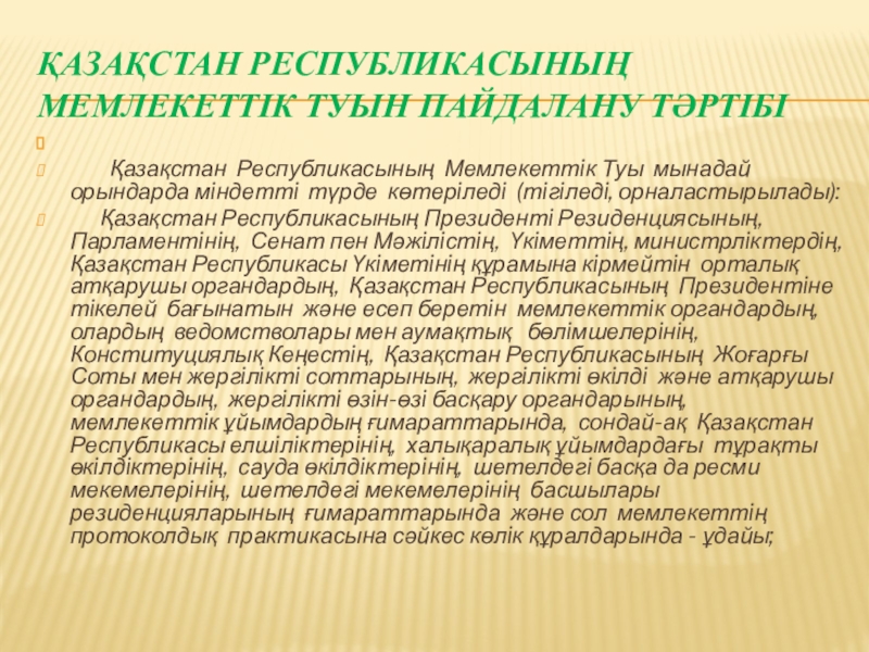 Слайд 11Қазақстан Республикасының Мемлекеттiк Туын пайдалану тәртiбi