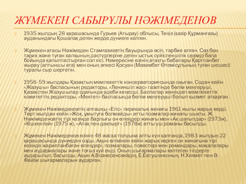 Слайд 24Жұмекен Сабырұлы Нәжімеденов