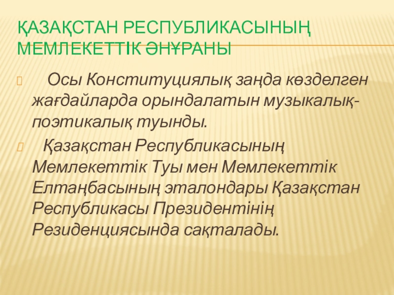 Слайд 9Қазақстан Республикасының Мемлекеттiк әНҰРАНЫ