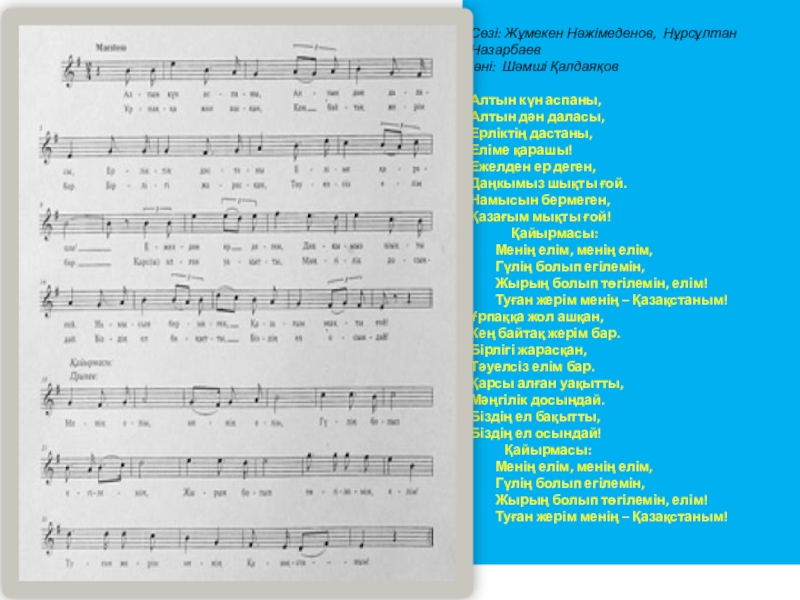 Слайд 3Әнұран бар ұрпаққа өсиет шашқандай,
