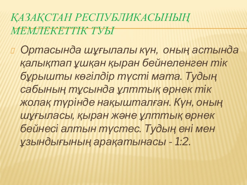Слайд 6Қазақстан Республикасының Мемлекеттiк Туы