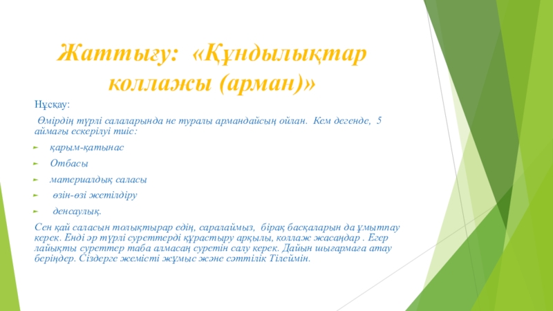 Слайд 11Жаттығу: «Құндылықтар коллажы (арман)»