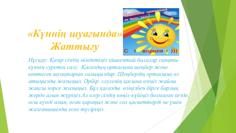 Нұсқау: Қазір сіздің міндетіңіз кішкентай балалар сияқты күннің