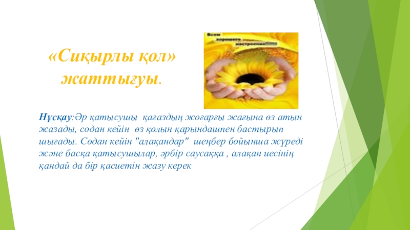 Слайд 10«Сиқырлы қол» жаттығуы.