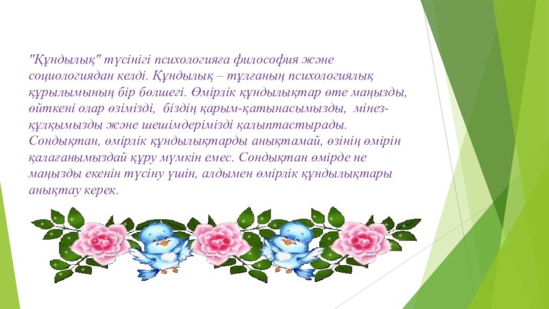 Слайд 7"Құндылық" түсінігі психологияға философия және социологиядан келді. Құндылық – тұлғаның психологиялық