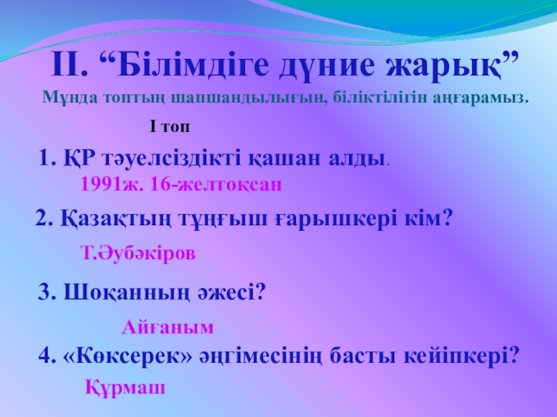 2. Қазақ даласының жарық жұлдызы?