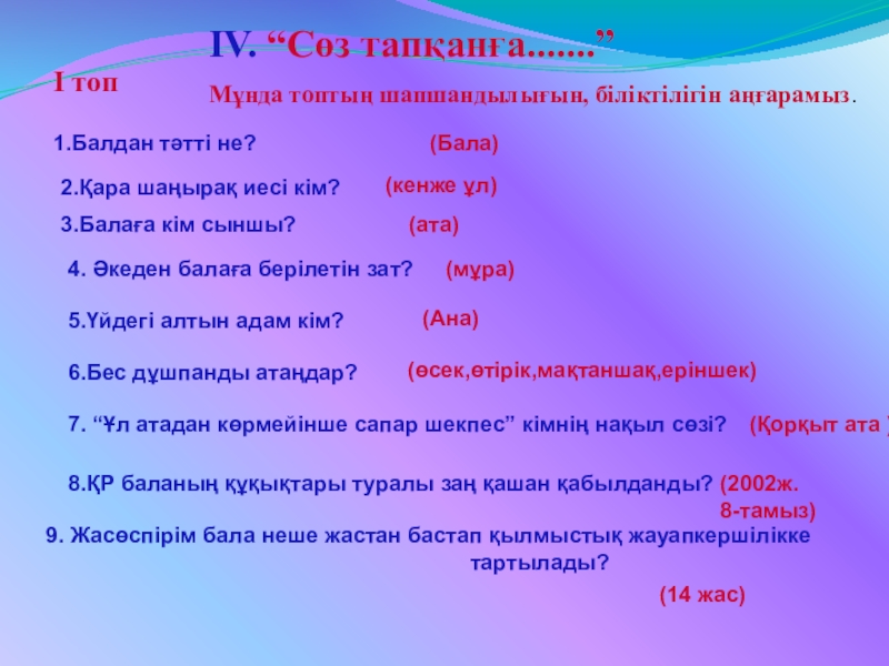3.Балаға кім сыншы?