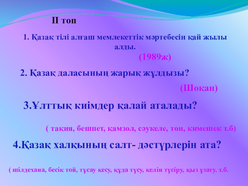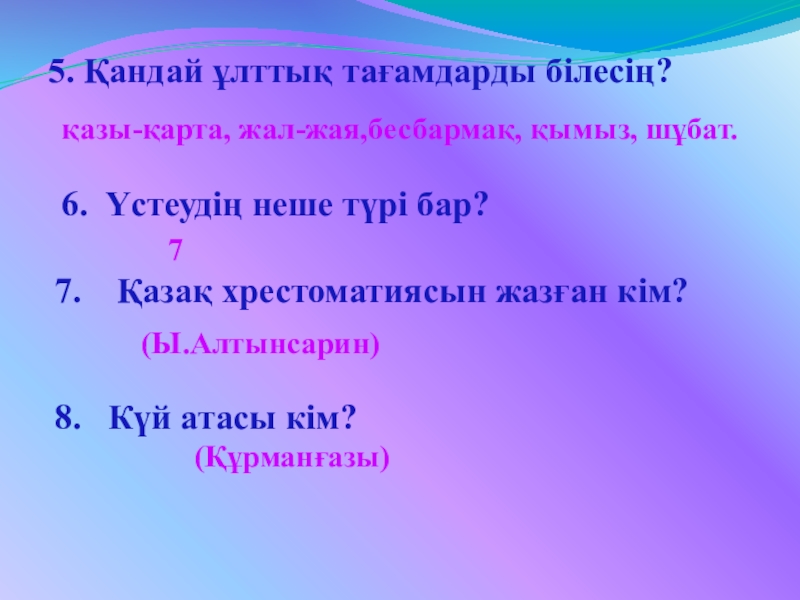 4.Қазақ халқының салт- дәстүрлерін ата?