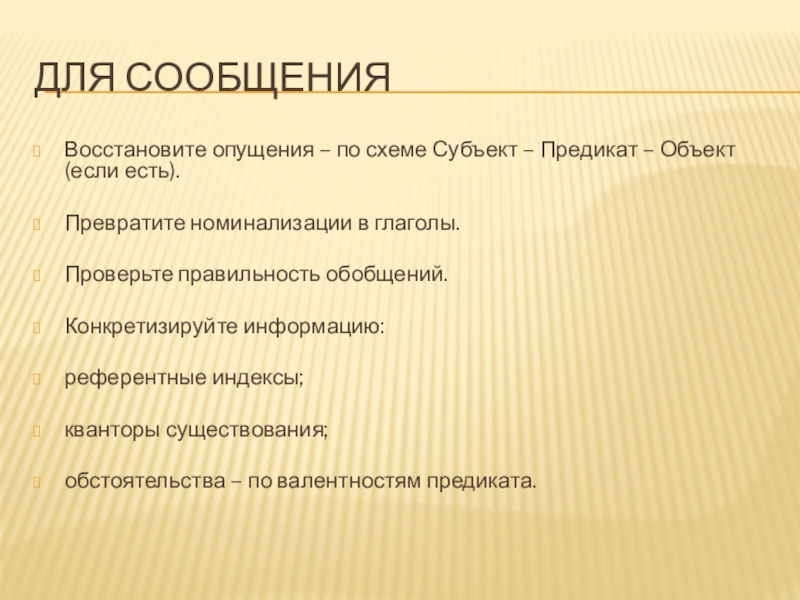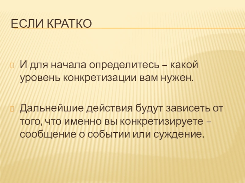 действия будут зависеть от того, что именно вы конкретизируете – сообщение о событии или суждение.
