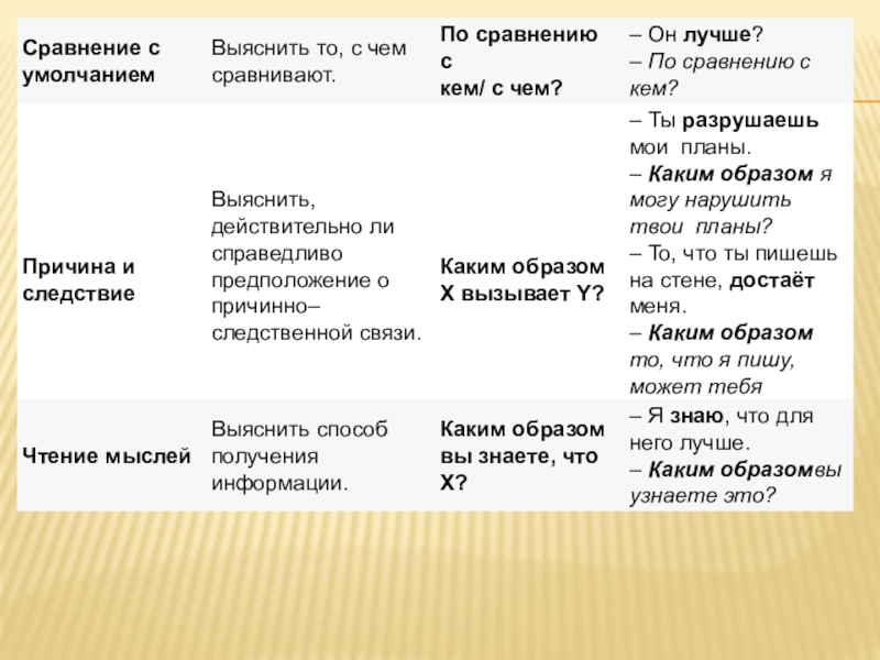 К искажениям: сравнение с умолчанием, причина и следствие и чтение мыслей