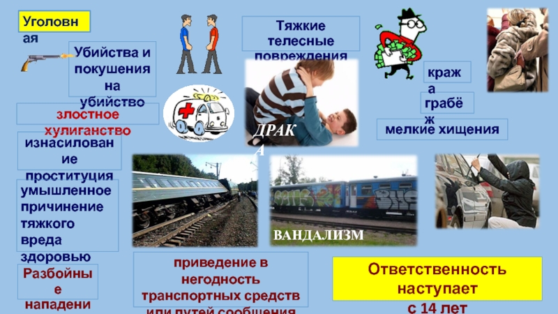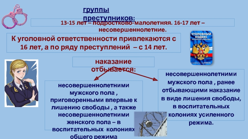 К уголовной ответственности привлекаются с 16 лет, а по ряду преступлений – с 14 лет.