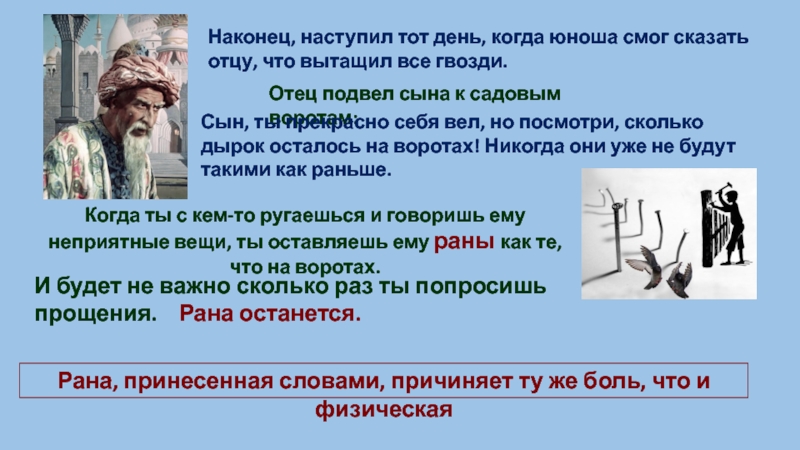 Когда ты с кем-то ругаешься и говоришь ему неприятные вещи, ты оставляешь ему раны как те, что на воротах.