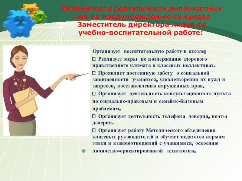 Реализует меры по поддержанию здорового нравственного климата в классных коллективах.