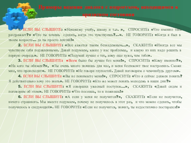 - Избегать нотаций, уговаривания, менторского тона речи.