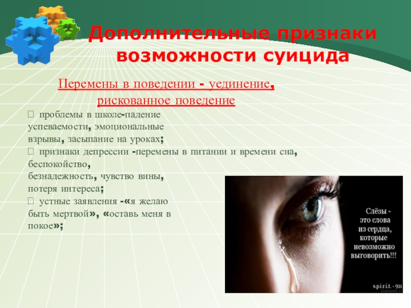 суицидального поведения среди детей и подростков» №01-29/1218 от18.07.06 г.