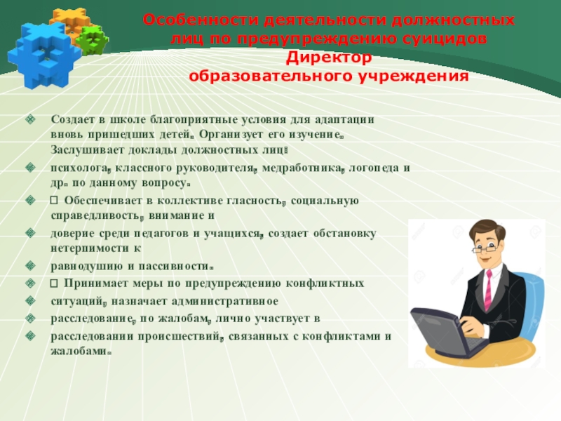 для адаптации вновь пришедших детей. Организует его изучение. Заслушивает доклады должностных лиц: