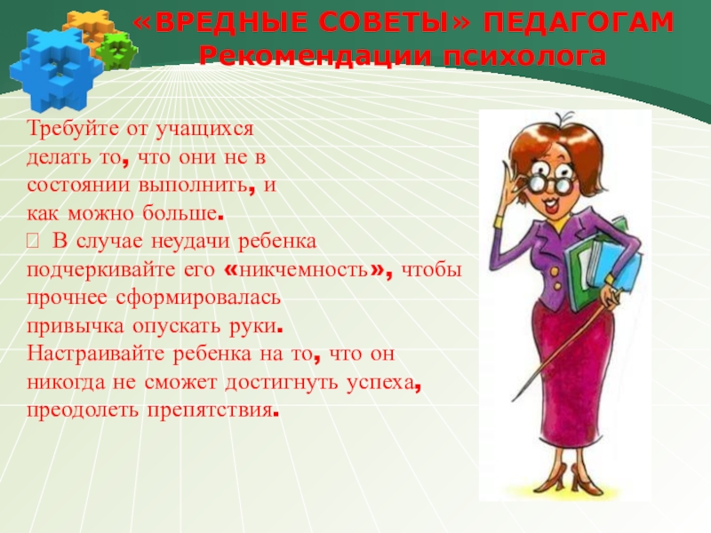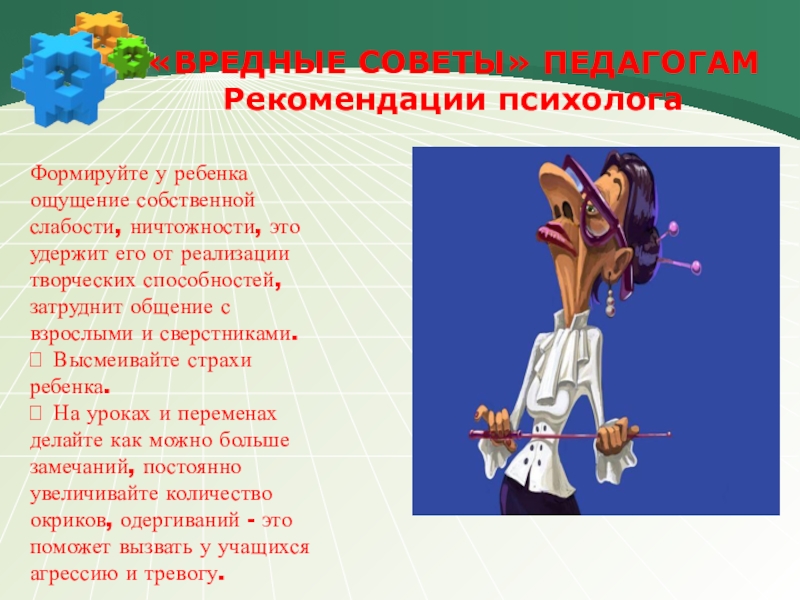 Слайд 55«ВРЕДНЫЕ СОВЕТЫ» ПЕДАГОГАМ