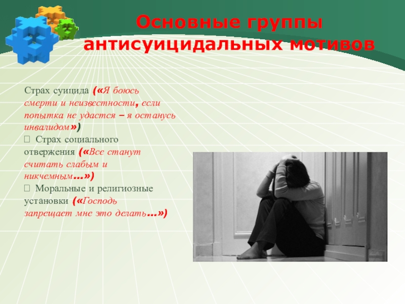 страх не эстетичности смерти и инвалидности в случае неудачной попытки,