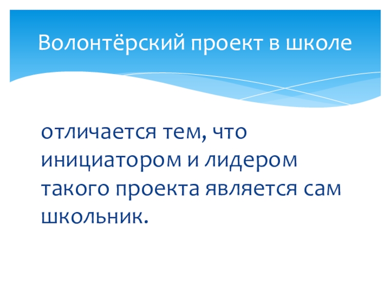 Слайд 38отличается тем, что инициатором и лидером такого проекта является сам школьник.