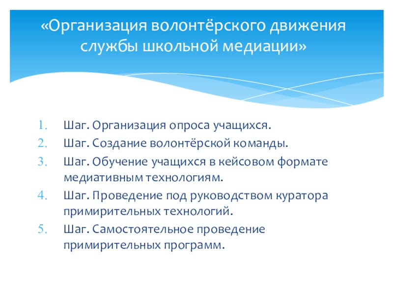 Шаг. Проведение под руководством куратора примирительных технологий.