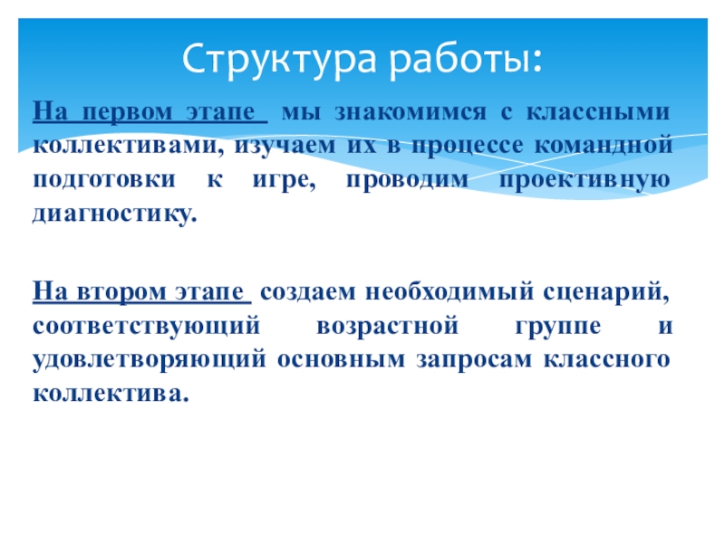 На первом этапе мы знакомимся с классными коллективами, изучаем их