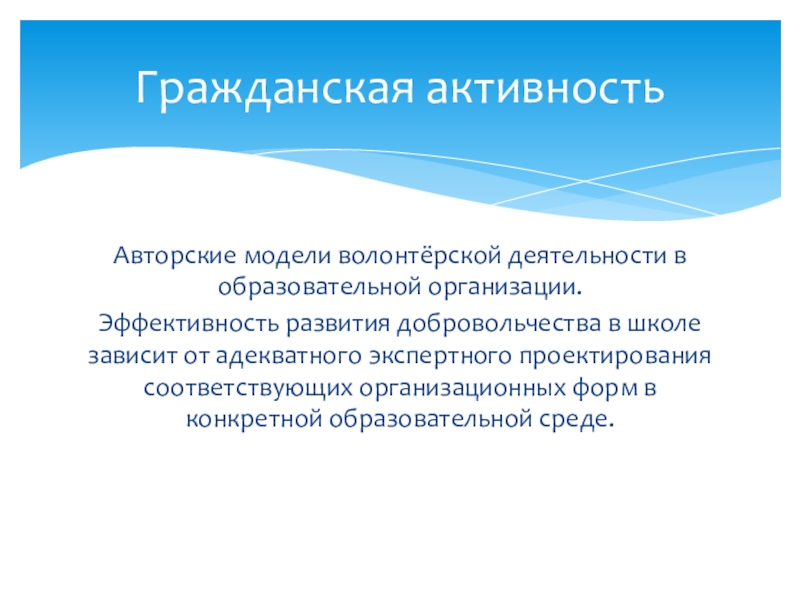 Слайд 35Авторские модели волонтёрской деятельности в образовательной организации.