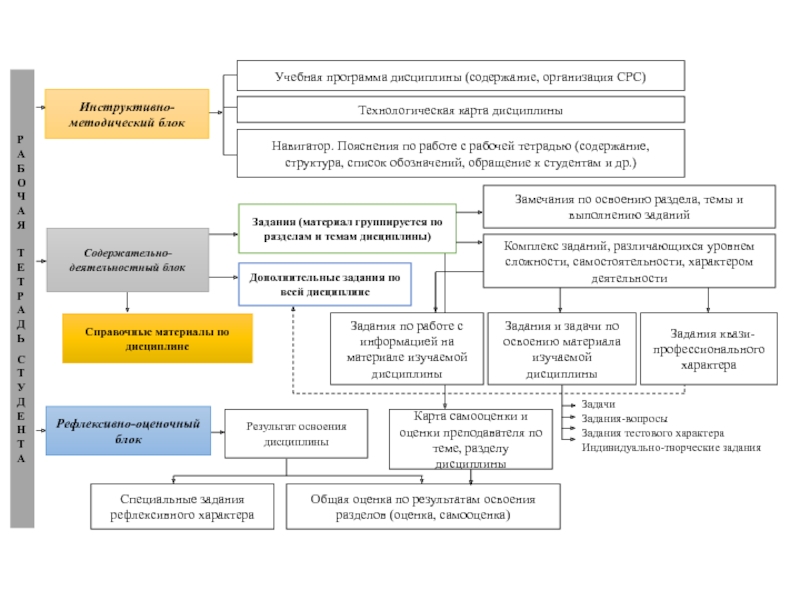Рабочая тетрадь - это наглядное представление основного учебного материала в логике познавательной деятельности, которая специально конструируется и представляется в предметно-знаковой форме, с целью повышения эффективности взаимодействия преподавателя и студентов.