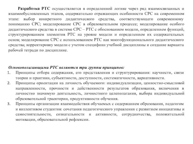 Основополагающими РТС являются три группы принципов: