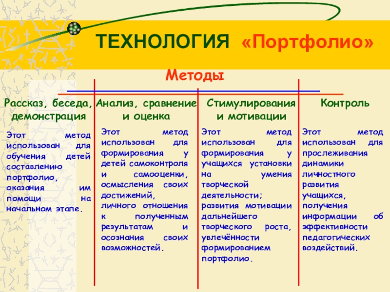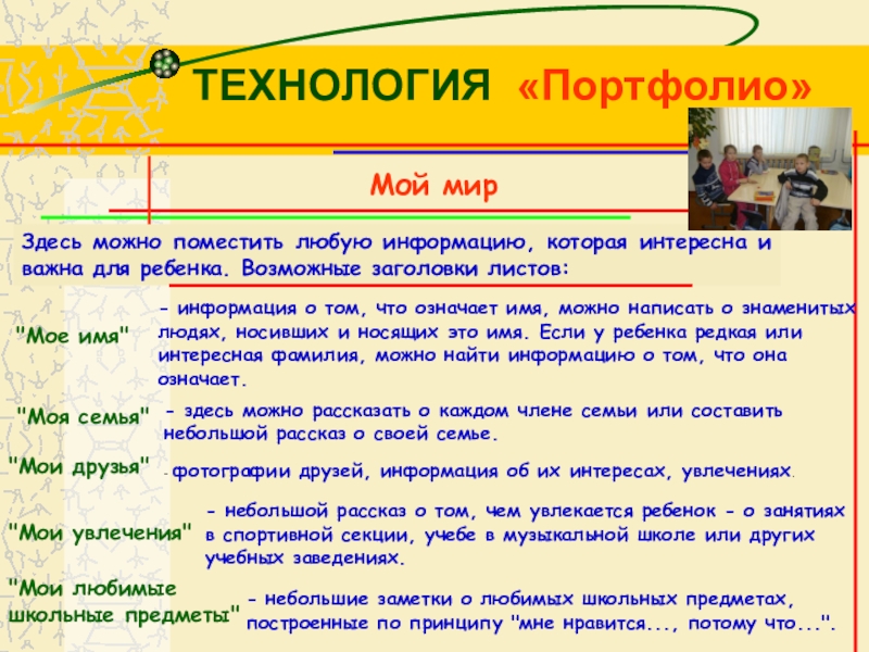 Этот метод использован для обучения детей составлению портфолио, оказания им помощи на начальном этапе.
