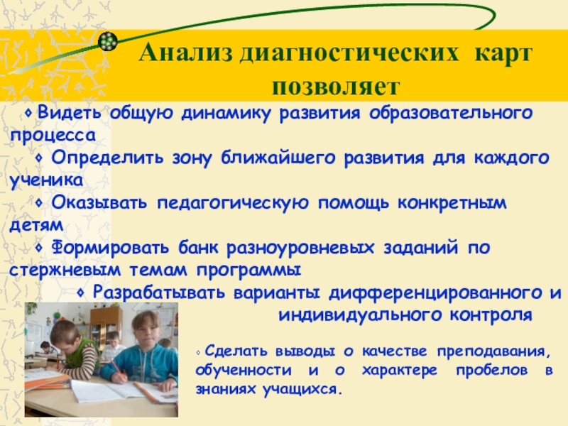 Анализ диагностических карт позволяет