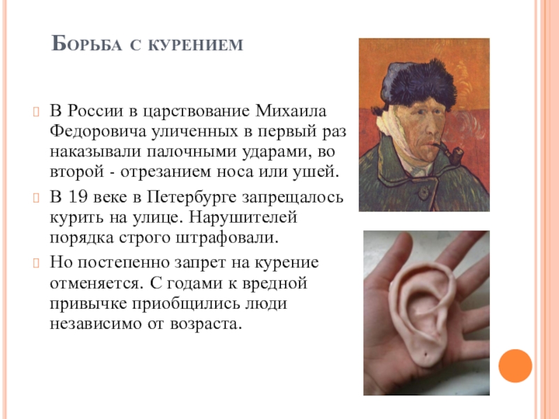 Но постепенно запрет на курение отменяется. С годами к вредной привычке приобщились люди независимо от возраста.