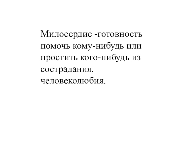Слайд 2Милосердие -готовность помочь кому-нибудь или простить кого-нибудь из сострадания, человеколюбия.