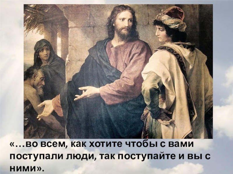 Слайд 13«…во всем, как хотите чтобы с вами поступали люди, так поступайте