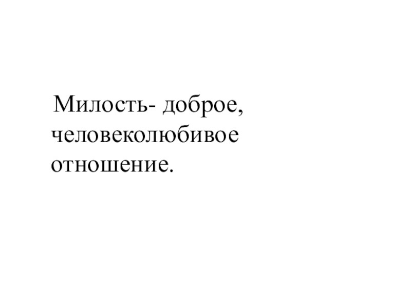 Слайд 4 Милость- доброе, человеколюбивое отношение.