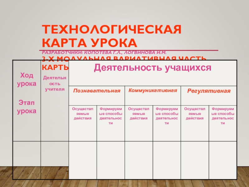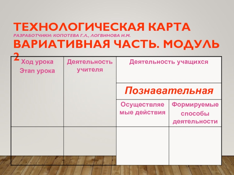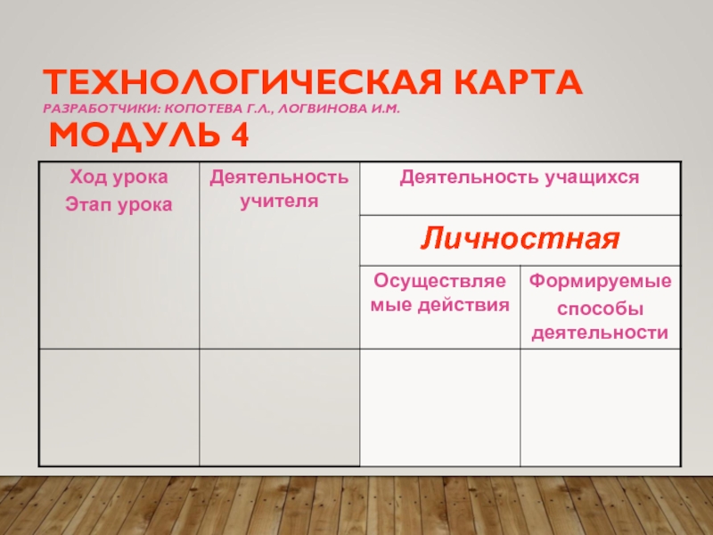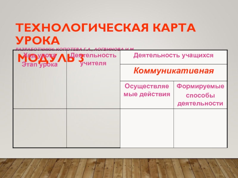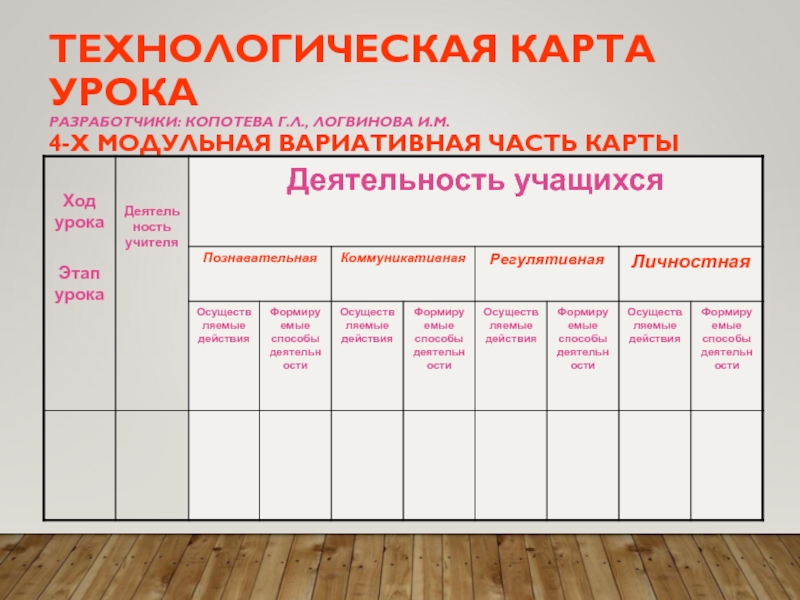 Технологическая карта Копотевой Г.Л., Логвиновой И.М.