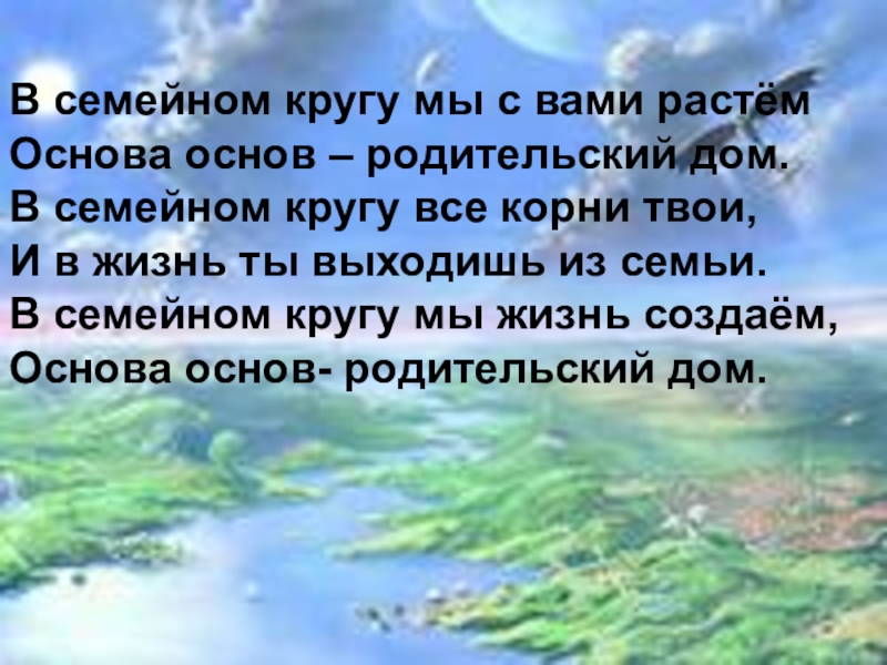 Семья- это не просто родственники, живущие рядом. Это близкие люди, которые сплочены чувствами, интересами, идеалами, отношением к жизни.