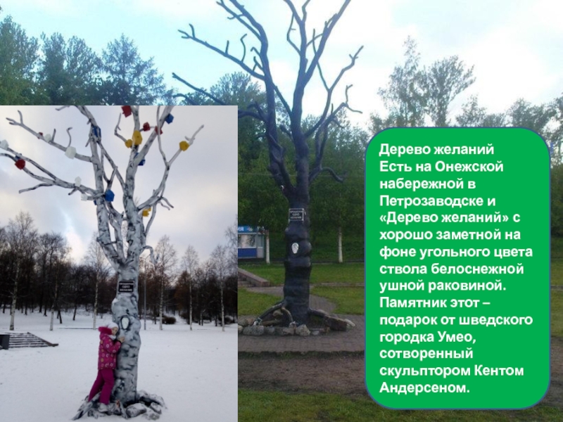 Есть на Онежской набережной в Петрозаводске и «Дерево желаний» с
